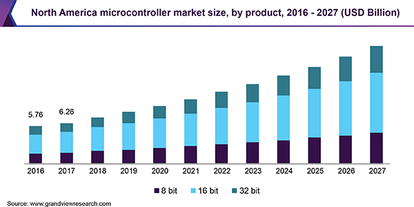 2019年,單片機(jī)開(kāi)發(fā)市場(chǎng)規(guī)模為208.2億美元,預(yù)計(jì)從2020年到2027年,復(fù)合年增長(zhǎng)率將達(dá)到10.8%。2019年,全球單片機(jī)出貨量超過(guò)300億個(gè)。汽車(chē),消費(fèi)電子產(chǎn)品的顯著增長(zhǎng),而醫(yī)療保健行業(yè)可以歸因于產(chǎn)品需求的增長(zhǎng)。單片機(jī)制器單元(MCU)主要用于需要用戶(hù)充分控制的設(shè)備中。行業(yè)競(jìng)爭(zhēng)的加劇導(dǎo)致產(chǎn)品價(jià)格低廉,預(yù)計(jì)將進(jìn)一步刺激需求。隨著智能電網(wǎng)的出現(xiàn),人們對(duì)智能能源管理的認(rèn)識(shí)不斷提高,有望進(jìn)一步推動(dòng)對(duì)MCU的需求。