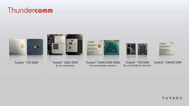 在德國紐倫堡舉行的Embedded World 2020貿(mào)易展覽會(huì)上,Thundercomm宣布了一系列SOM,可為IoT,5G,智能揚(yáng)聲器和智能零售提供聯(lián)網(wǎng)智能。其中包括用于5G連接的Thundercomm TurboX T55 SOMTurboX C865 SOM,用于智能揚(yáng)聲器解決方案的TurboX C404C405 SOM,用于LTE-M / NB-IoT解決方案的TurboX T95 SOM,用于智能零售解決方案的TurboX CM2150 SOMTurboX CM450 SOM。除由Qualcomm SnapdragonTM X55 5G調(diào)制解調(diào)器-RF系統(tǒng)提供動(dòng)力的TurboX T55和具有旗艦Qualcomm SDM865平臺(tái),TurboX CM2150TurboX CM450TurboX C865外,大多數(shù)解決方案都可通過商業(yè)途徑獲得,所有這些解決方案將于2020年第一季度發(fā)布。