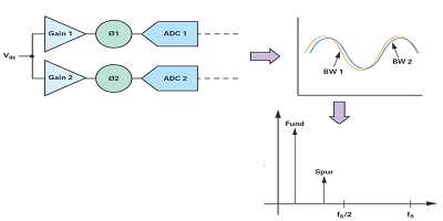 增加的采樣率提供了這些應(yīng)用程序的更多的帶寬,但  允許 對于 更容易 頻率 規(guī)劃  減少  的是通常在ADC輸入中使用的抗混疊濾波器的復(fù)雜性和成本。隨著 所有的這些 好處, 一個(gè) 具有  奇跡什么  價(jià)格 我要付錢?” 雖然交錯(cuò)的ADC提供更高的 帶寬  其他 不錯(cuò)的 收益, 一些 挑戰(zhàn)也在這種實(shí)現(xiàn)進(jìn)入圖片。