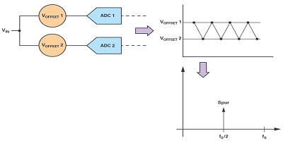 最簡單  這些  了解  可能  偏移 不匹配 的兩個(gè)ADC之間。每個(gè)ADC都有一個(gè)相關(guān)的直流偏移值。當(dāng)所述兩個(gè)ADC被交錯(cuò)和樣品采集替代地,回到來回之間的2級的ADC,所述直流偏移的每個(gè)連續(xù)樣品的變化。
