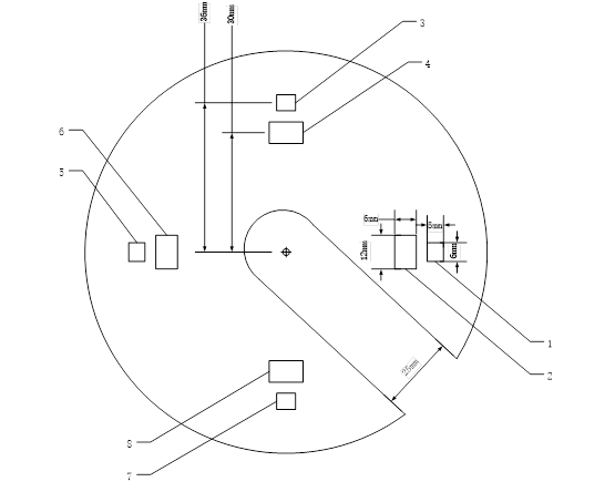 傳感器外圈半徑r1=36mm(傳感器芯片中心位置到陣列中心的距離)。(在1-3mm內(nèi)適當(dāng)調(diào)整,保證內(nèi)外圈傳感器芯片的間距盡可能小)。PCB板內(nèi)孔直徑:25mm
